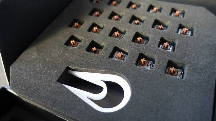 Underneath the keyboard in the box was another box as well: a box of mechanical switches. It's this second box that's a harbinger of better things to come from Logitech, and hopefully other hardware manufacturers.