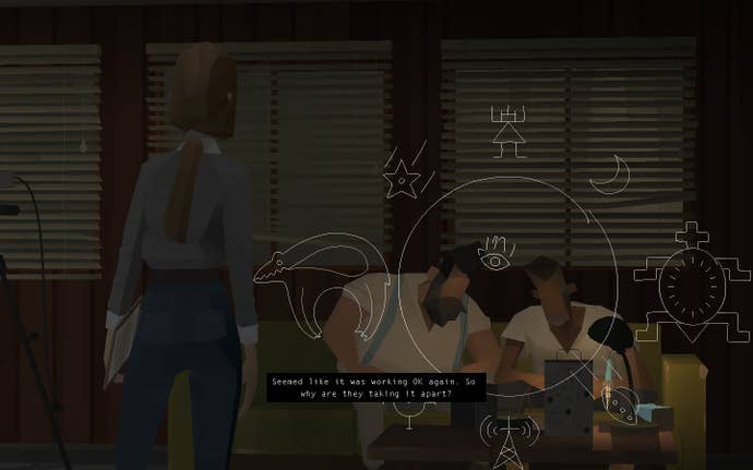 Throughout its near-decade long stretch, Kentucky Route Zero has followed an unlikely band of characters, all tethered together by a word no one really utters: homelessness. There's the main characters, Conway and Shannon. Conway is an aged soul making one last delivery for a small antique shop that's closing down. He has a dog who moves about as sluggishly as he does. The address he's delivering to? It doesn't exist, seemingly. Until it does. Then there's Shannon, who is younger but hardened by her own tragedies. Her parents, once mine workers, died in a flood. She fixes TVs for a living, or used to before the lease on her workshop was suspended. The first thing she asks Conway, if you direct her to, is: "Do you believe in ghosts?" She tags along with Conway on his journey because, well, what else can she do?