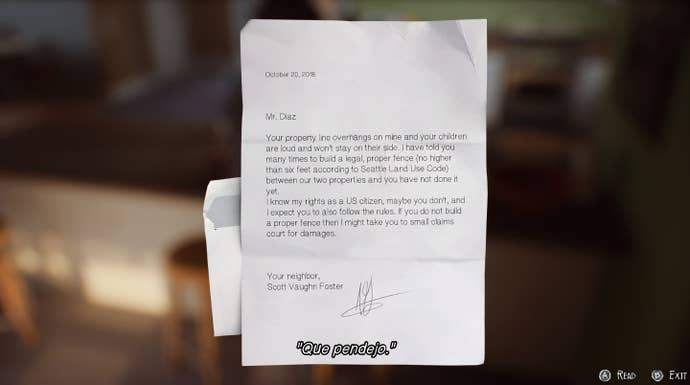 This probably makes me sound neurotic. But I'm 25 going on what feels like 35, and when I was Sean's age, I was listening to these very bands because they were semi-new. With such song choices just in episode one, I'm counting down until Grizzly Bear's "Foreground" soundtracks a sad moment, or an episode opens with a Peter Bjorn and John song. It's not bad licensed music, it just feels out of place for a game about a 16-year-old set in 2016. Sean strikes me as the type of kid who's really into Mac Demarco, or something else that makes sense for a teenager his age.