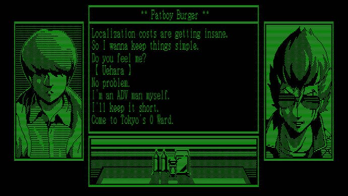 Meanwhile, Travis' trailer serves as a hub, where he can go to shop for new t-shirts, review collectibles, and go to the story portions of the game. That story is largely separate from the playable Death Drive portions and are told in the style of 1980s Japanese PC visual novels complete with Apple 2-era pixelated graphics. It's here that a bulk of Suda 51's ear for post-modern dialogue plays out, with everything from references to movies, video game review sites, and even Deadpool himself. There are plenty of pop-culture references abound in Travis Strikes Again, but I found myself laughing more than groaning. Like Deadpool, Travis is self-aware enough to know when he's becoming obnoxious. The writing also pulls back on the references when needed, introducing something unique to the world of No More Heroes.